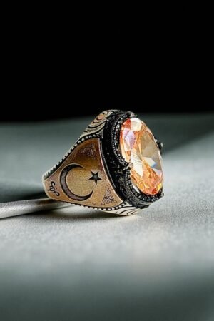 Citrine Stone Luxury Turkish 925 Silver Gent’s Ring with Arabic Calligraphy
