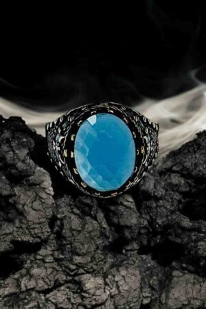 Blue Zircon Turkish 925 Silver Gent’s Ring