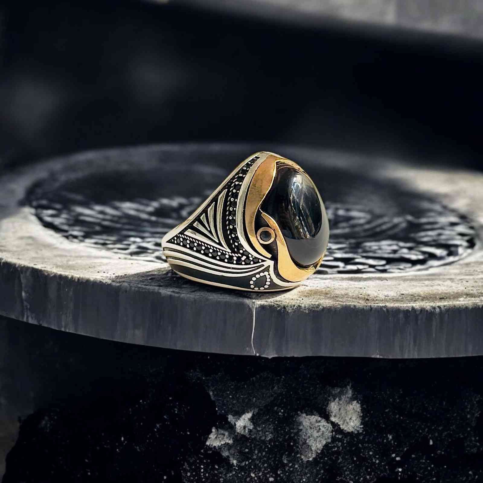 Black Aqeeq Turkish 925 Silver Gent’s Ring