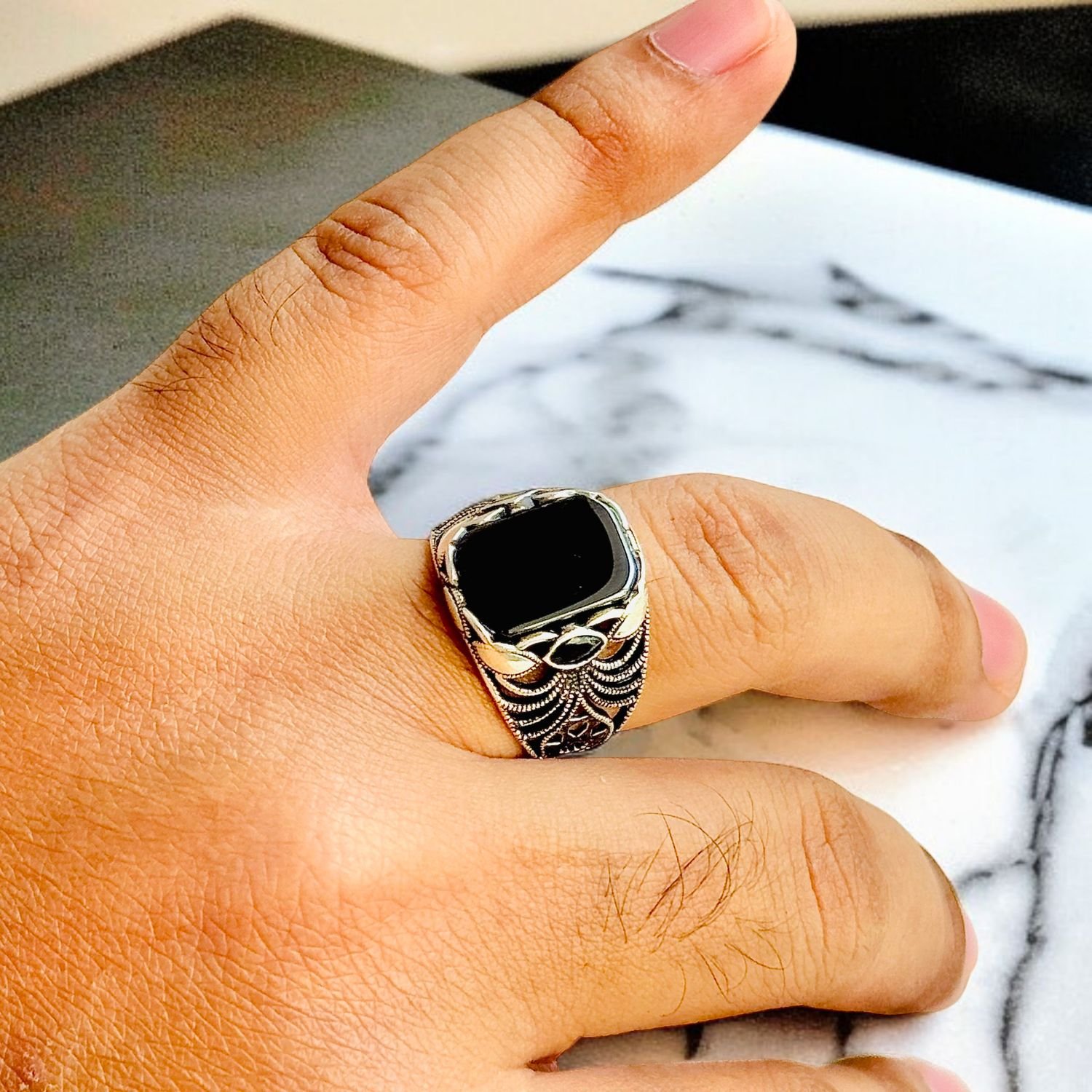 Black Onyx Turkish 925 Silver Gent’s Ring