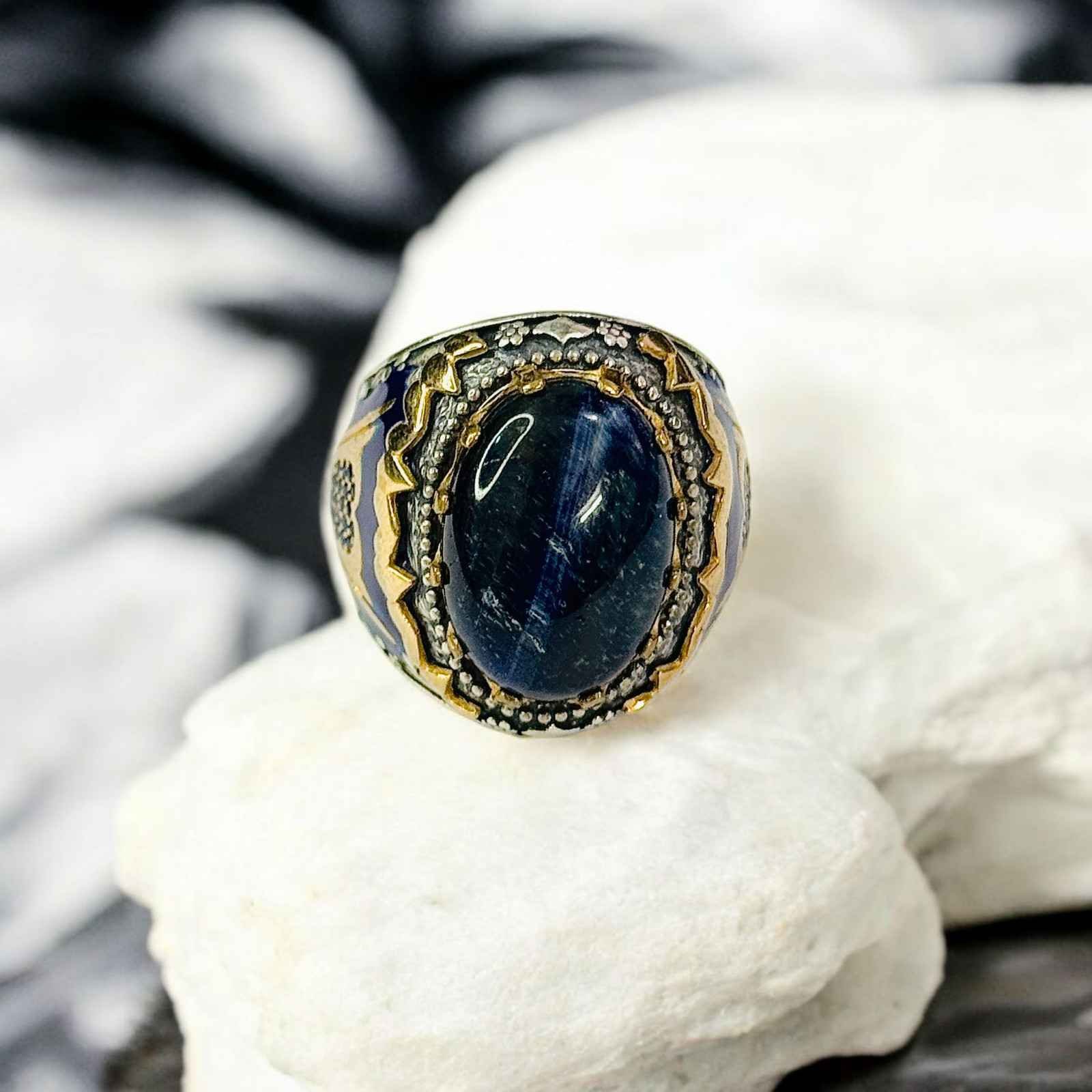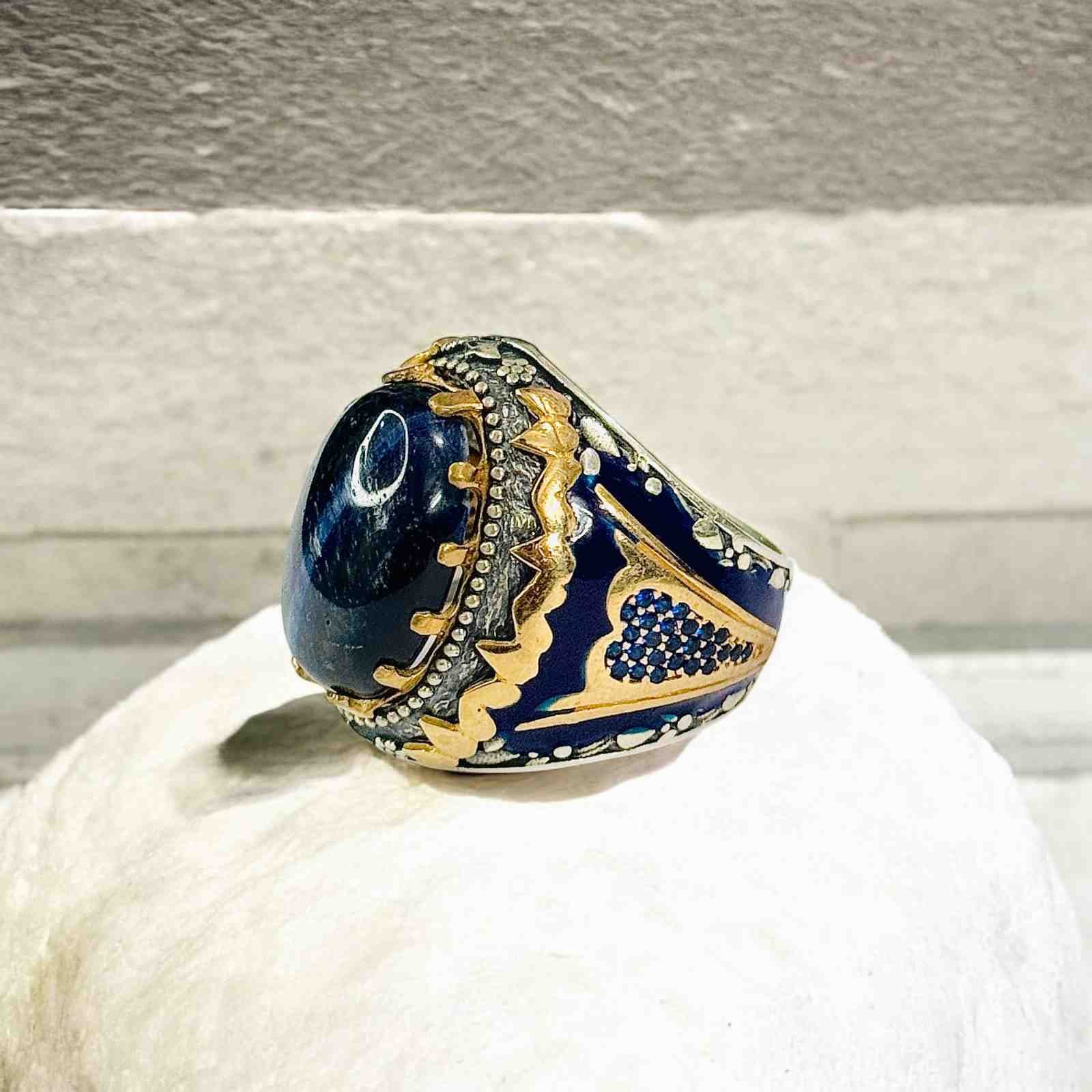 Blue Tiger Eye Turkish 925 Silver Gent’s Ring