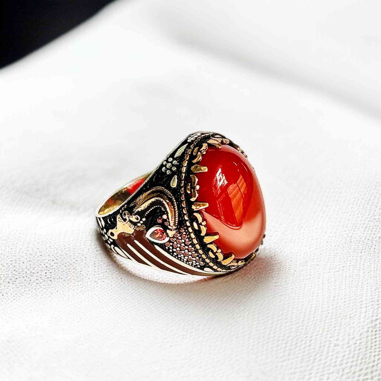 Red Aqeeq Turkish 925 Silver Gent’s Ring