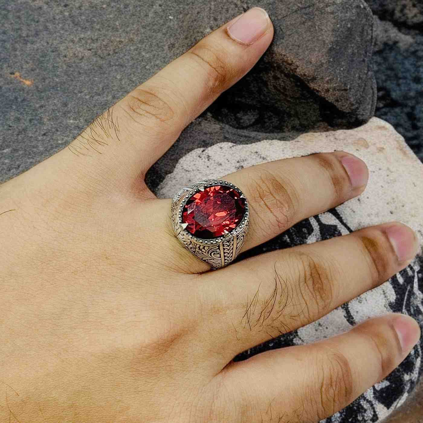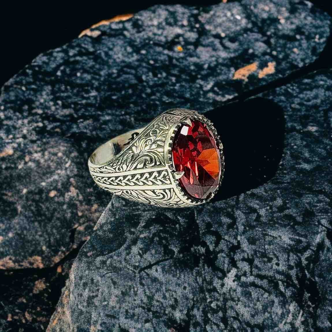 Red Zircon Turkish 925 Silver Gent’s Ring