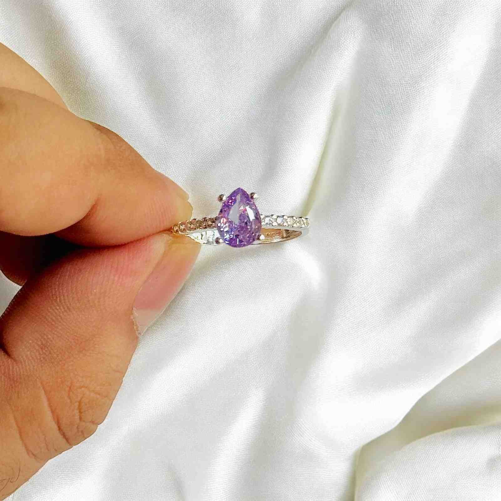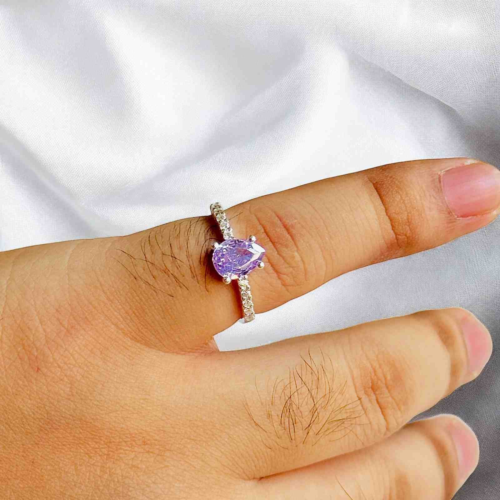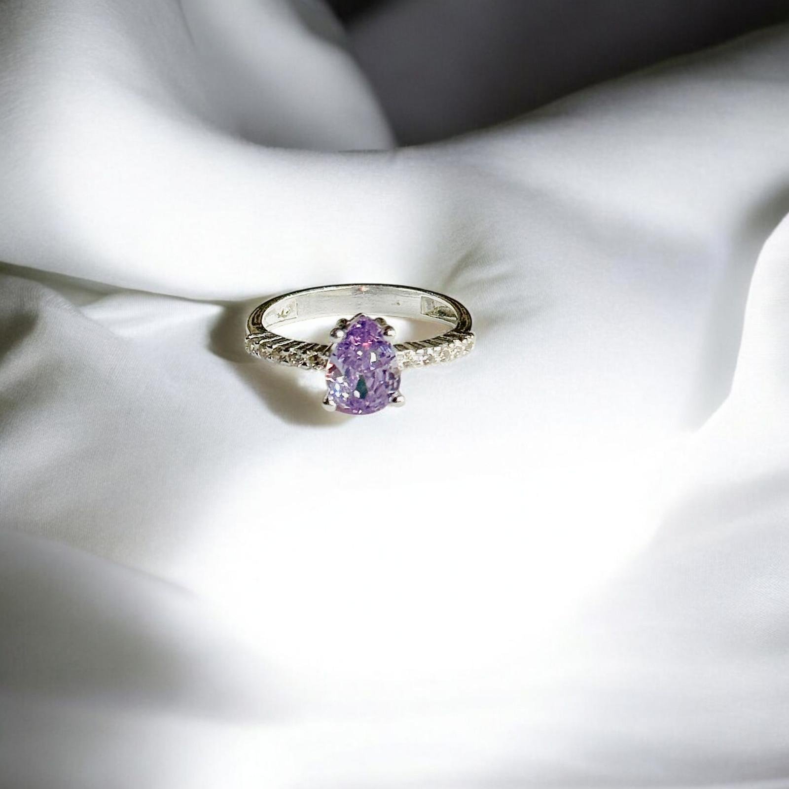 Turkish 925 Silver Ladies Ring with Purple Zircon