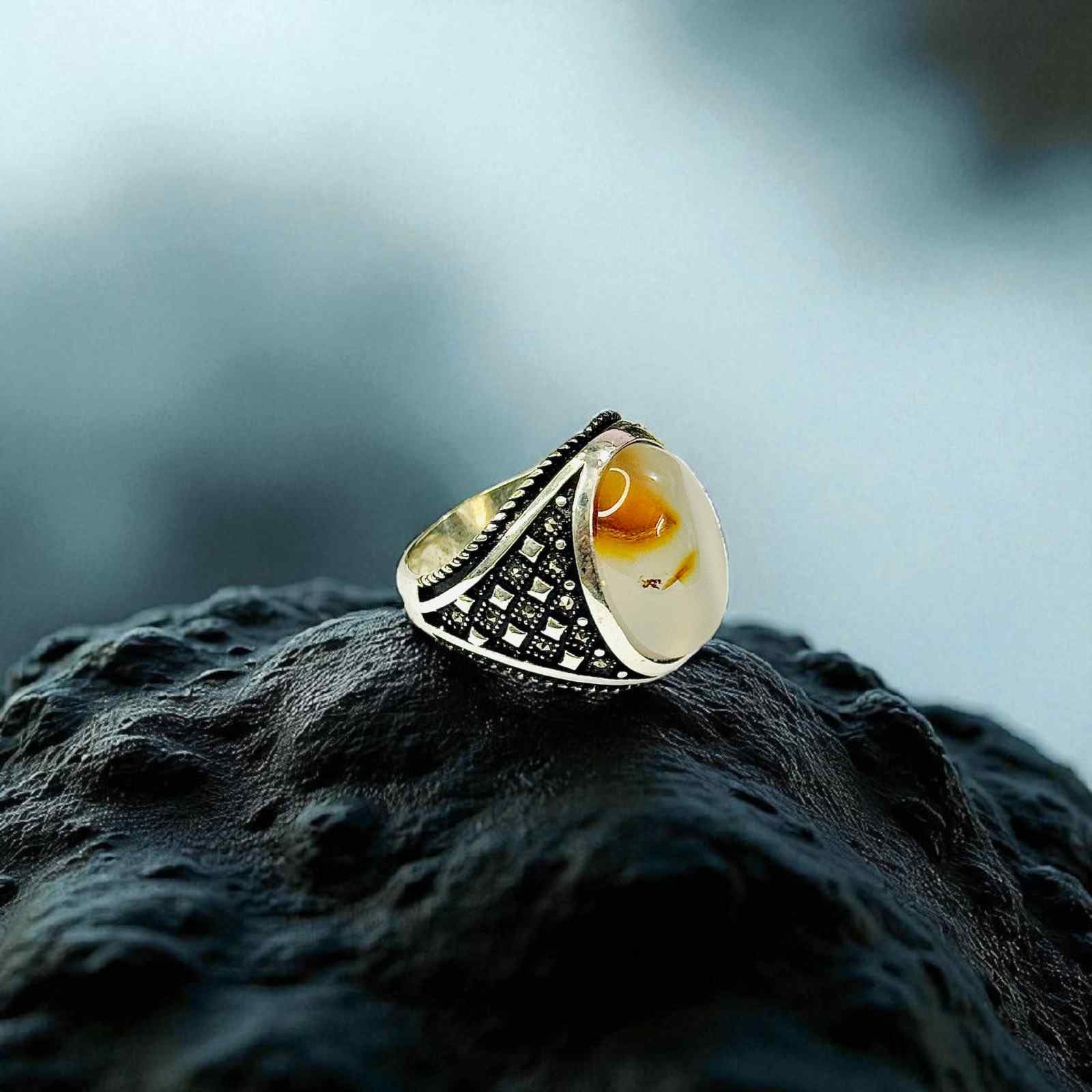 Yemeni Aqeeq Turkish 925 Silver Gent’s Ring