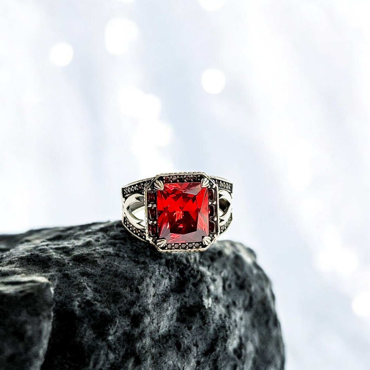 Zulfiqar Turkish 925 Silver Gent’s Ring with Red Zircon