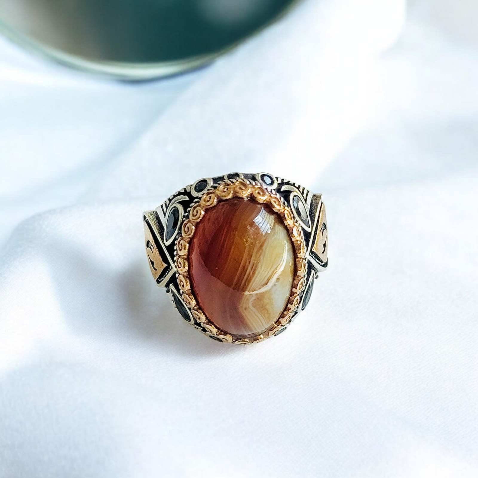 Zulfiqar Turkish 925 Silver Ring With Yemeni Aqeeq